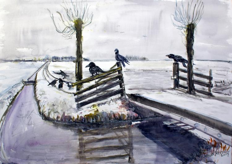 Brücke mit Krähen
